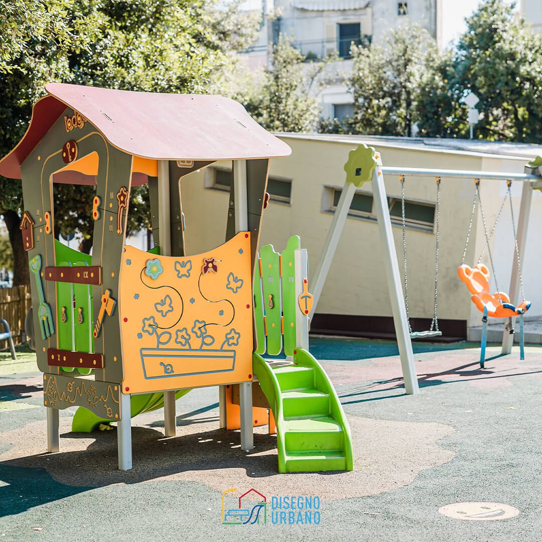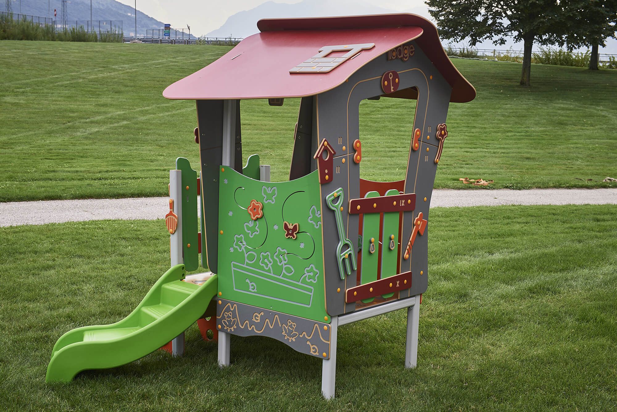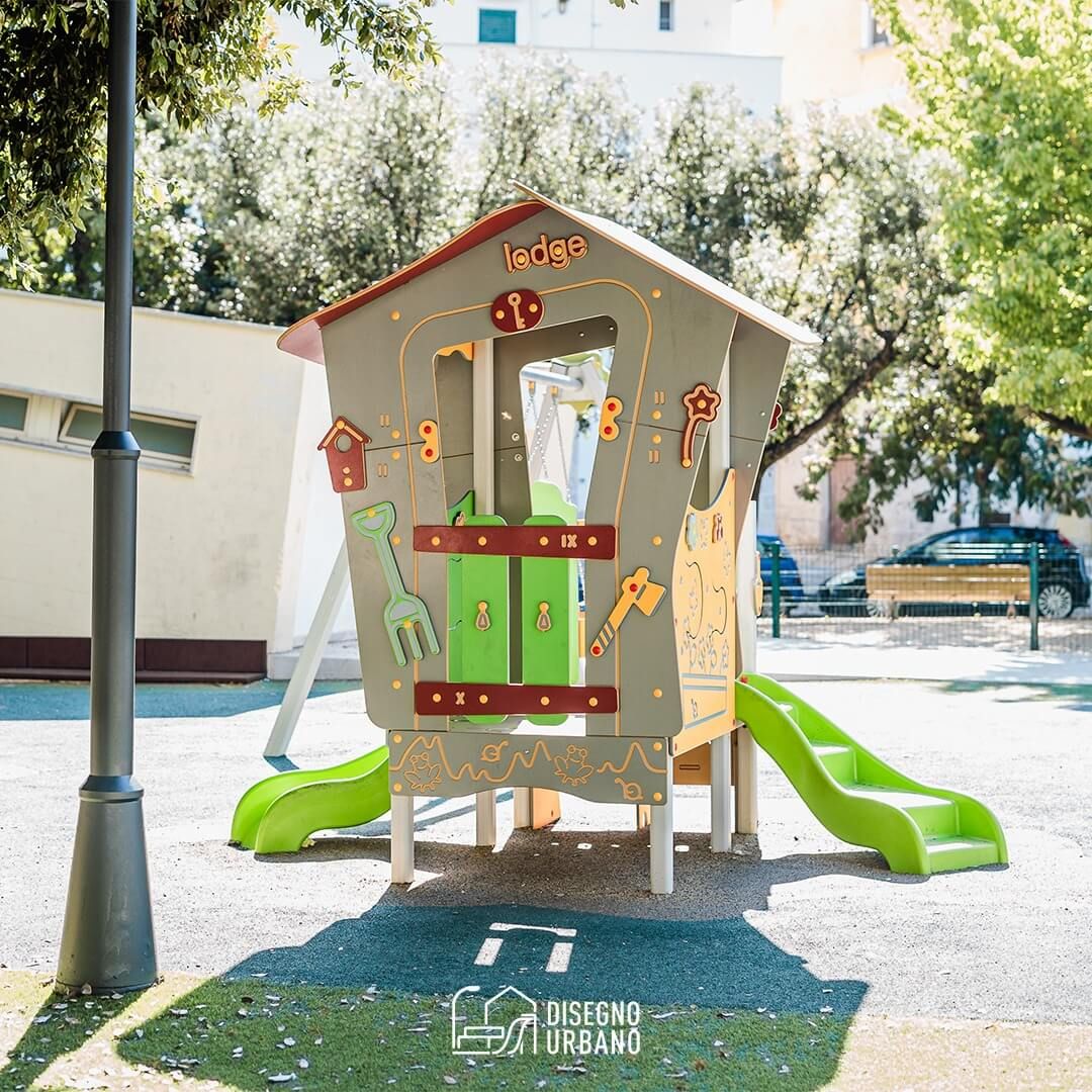 È La casetta a forma di cartoon, per i bimbi che vogliono vivere le loro favole e avventure al parco socializzando con nuovi amici.